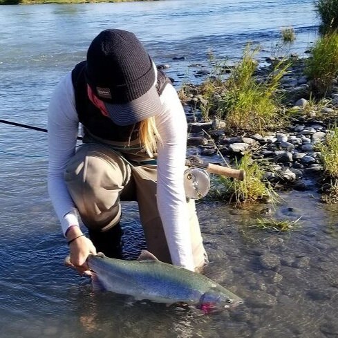 River conditions are ideal for fly fishing during this earlier time frame. Any time after July starts can make wading conditions very difficult and hard to fly fish the right way for kings due to faster and deeper glacial flows.