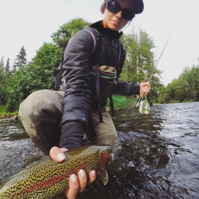 Kai battles a big Rainbow Trout during the "bead bite" on the Kenai River.