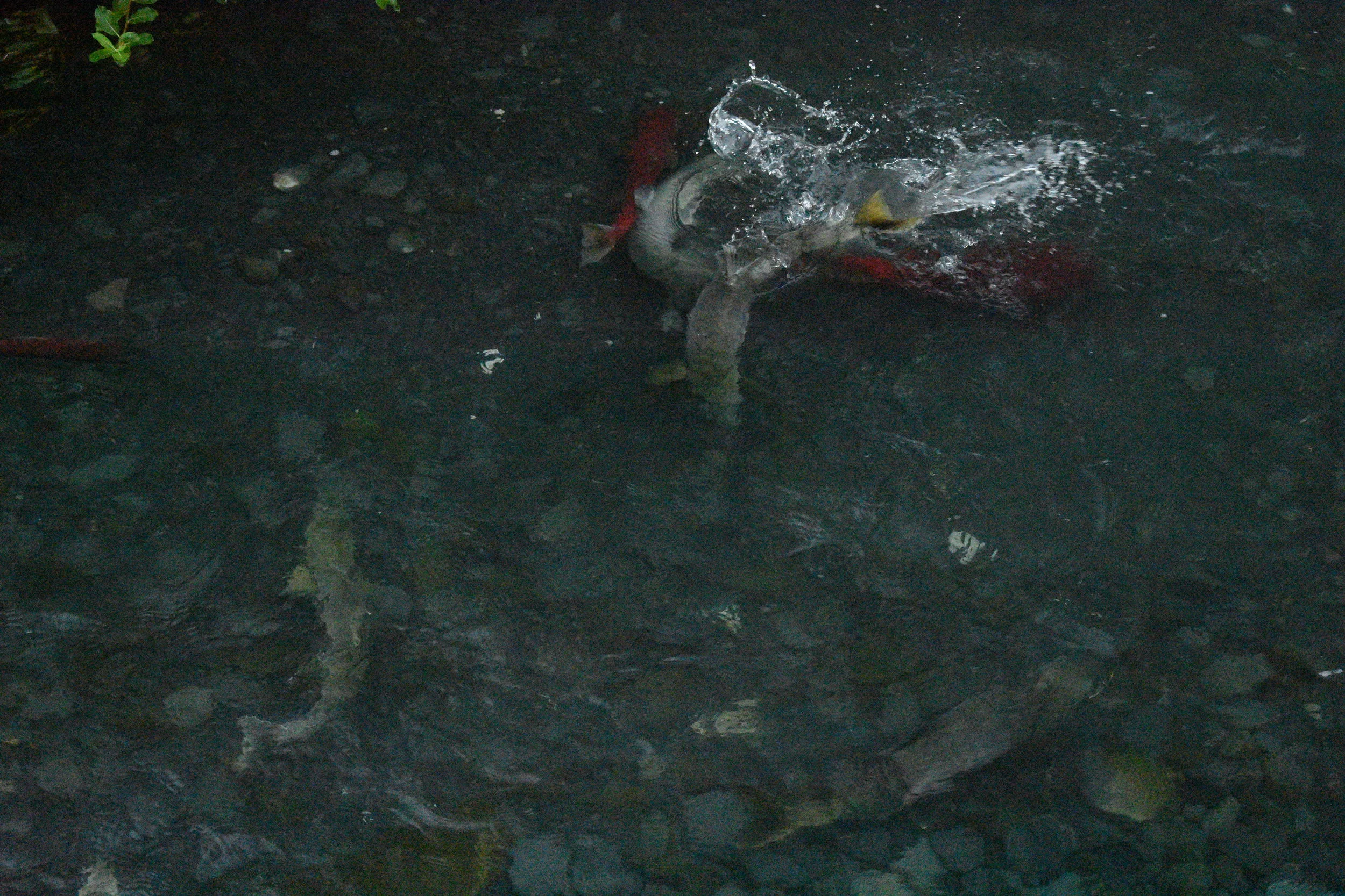 On the drive to Wittier, AK, you'll find several spots to view wild salmon as they prepare to spawn in one of the many local streams and rivers.