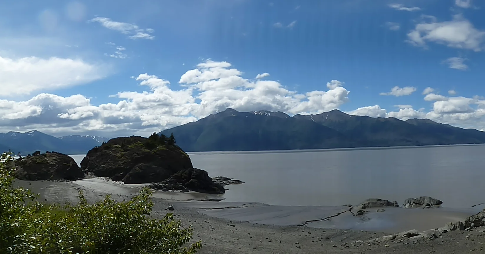 Summer views of the Turnagain Arm as you head toward the Kenai Peninsula.